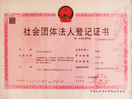 吉林省應(yīng)急管理學(xué)會(huì)登記證書(shū)